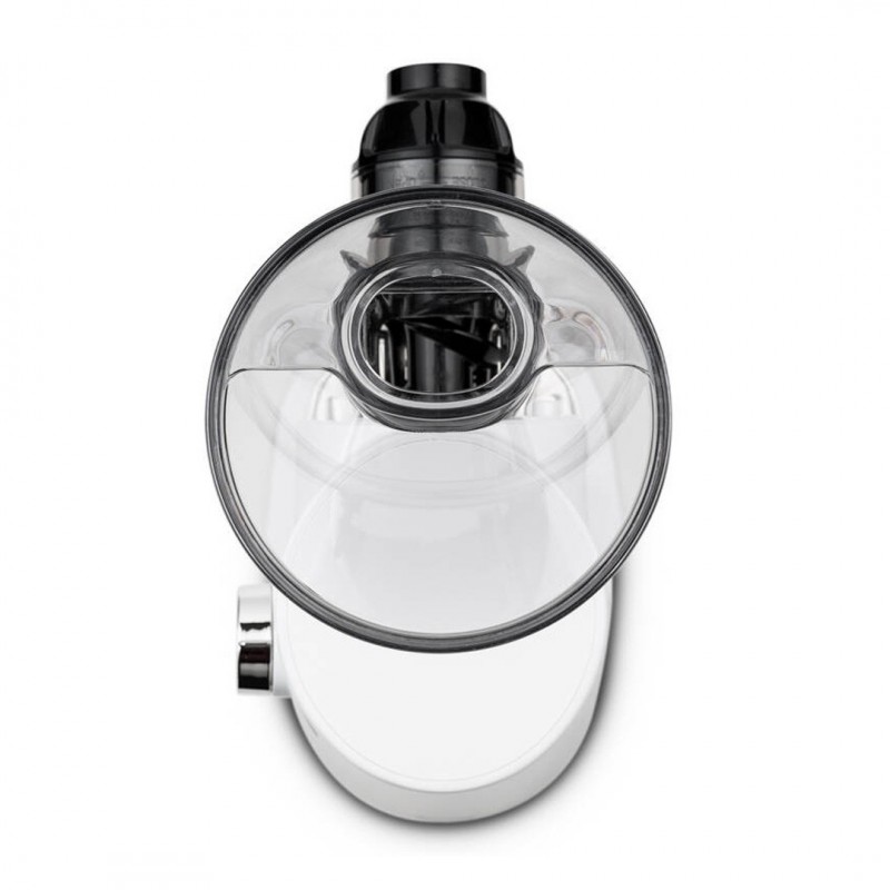 Para o tubo de alimentação, pegamos nas melhores idéias dos nossos espremedores verticais e as adaptamos para o Sana Supreme. O resultado é um funil duplo com uma abertura padrão e uma tigela funda para facilitar a alimentação de produtos menores ou folhas verdes. Também inclui uma capa de proteção contra poeira para manter o espremedor limpo quando não estiver em uso.